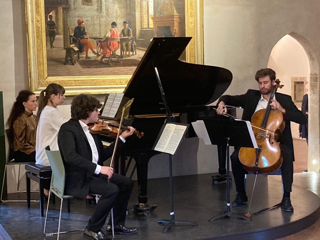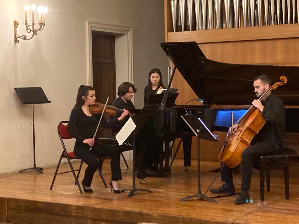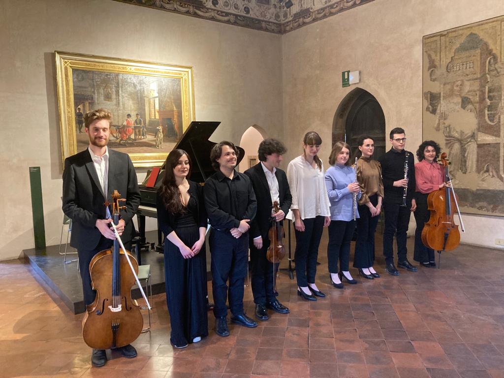 Iniziata martedì 18 aprile nel Salone dei Concerti di Palazzo Venezze con un bell’impaginato dedicato a tre ampi lavori, rispettivamente la Sonata K 379 di Mozart, il Trio op. 11 di Beethoven e la Sonata op. 120 n. 1 di Brahms nelle interpretazioni di Domenico Nicola Percetti violino, Nicolò Perlari e Sebastiano Ballo Bertin clarinetti, Michele Ballo Bertin violoncello con Giuseppe Fagnocchi pianoforte, la rassegna è proseguita giovedì 20 a Casa Romei a Ferrara con un programma del Novecento dedicato ad Alfredo Casella e a Francis Poulenc ottimamente eseguito da Lyu Jiawen soprano, Liu Xiangyu tenore, Domenico Nicola Percetti violino, Caterina Colelli violoncello, Angelo Pastorini, Beatrice Bruscagin e He Qing pianoforte, Camilla Masin flauto, Marta Zese oboe, Enrico Moretti clarinetto, Filippo Tomasi fagotto e Christian Scalaprice corno.