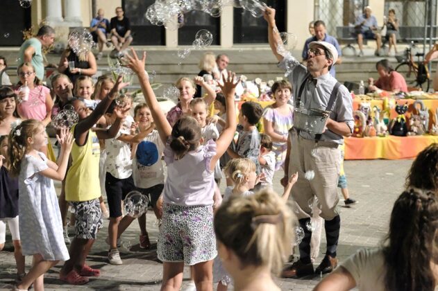 Ma c’erano soprattutto numerosi bambini con le loro famiglie, con gli occhioni rapiti dalle acrobazie, e pieni di domande di rito da porre agli artisti a fine spettacolo. Fra l’altro, poco prima del “Cafè Rouge”, come api sui fiori, erano stati tutti radunati, da ogni angolo della piazza Garibaldi, dall’irresistibile mago delle bolle, Enrico Moro, artista di strada, anch’egli amico della stagione invernale de “Il teatro siete Voi”, ingaggiato per la Fiera di Ariano. Davvero una giornata da ricordare per i tantissimi bambini presenti; da mettere dentro la scatola delle cose preziose e portare con sé nella vita.