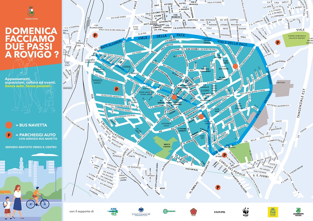 Le auto non potranno circolare in centro dalle 10 alle 20, a meno che non abbiano un motore elettrico. Sarà vietata la circolazione dei veicoli e dei ciclomotori nell’area all’interno dell’anello periurbano, ma il Comune di Rovigo ha organizzato un servizio di bus navetta molto frequente che attraverserà il Corso del Popolo, con diverse fermate, e collegherà ai parcheggi esterni per facilitare l’accesso in città, lasciando le auto immediatamente all’esterno dell’area interdetta al traffico.