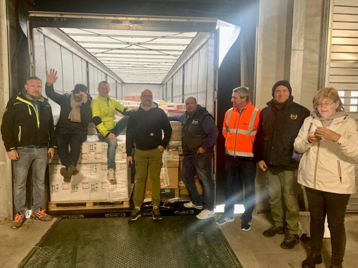 ROVIGO – Dalla Parrocchia di San Bortolo è partito stamane, venerdì 22 aprile, il settimo carico di aiuti umanitari che, attraverso Varsavia, raggiungeranno poi la città ucraina di Novovolyns’k nella regione di Volyn. Il bilico, messo a disposizione dalla ditta GTB trasporti, è partito alle 7.00 del mattino e percorrerà circa 2500 chilometri (quasi 5000 tra andata e ritorno) per portare quintali di beni di prima necessità a una comunità sconvolta dalla guerra. Alla guida del mezzo, carico di scatoloni e bancali, Marco Verzolini e Massimo Govoni, coordinati da Carlo dalla Libera.