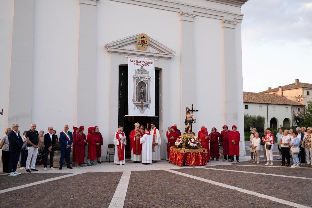 Al termine della celebrazione, la statua del Santo è stata portata in processione dai “fradei” della Confraternita dei Flagellanti della Santissima Trinità di Loreo, accompagnata dalla Banda Cittadina di Porto Viro, tra la partecipazione commossa e devota dei fedeli. La serata si è conclusa con la benedizione solenne del Vescovo, i ringraziamenti di don Alfonso e del sindaco Mario Mantovan, e un momento conviviale offerto a tutti i presenti.