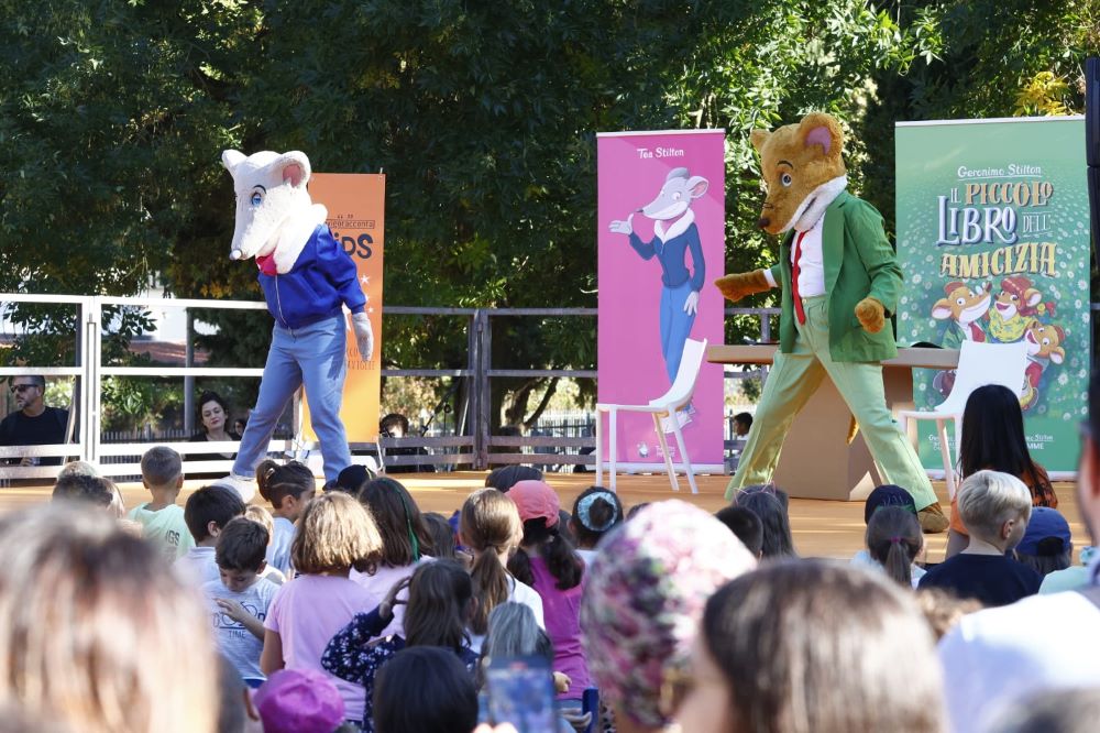 Fino a quando il parco si è trasformato in una vera e propria “Woodstock per piccoli” quando sono saliti sul palco i mitici e attesissimi Geronimo e Tea Stilton che si sono poi intrattenuti in un’interminabile firmacopie carico di affetto stratopico.
