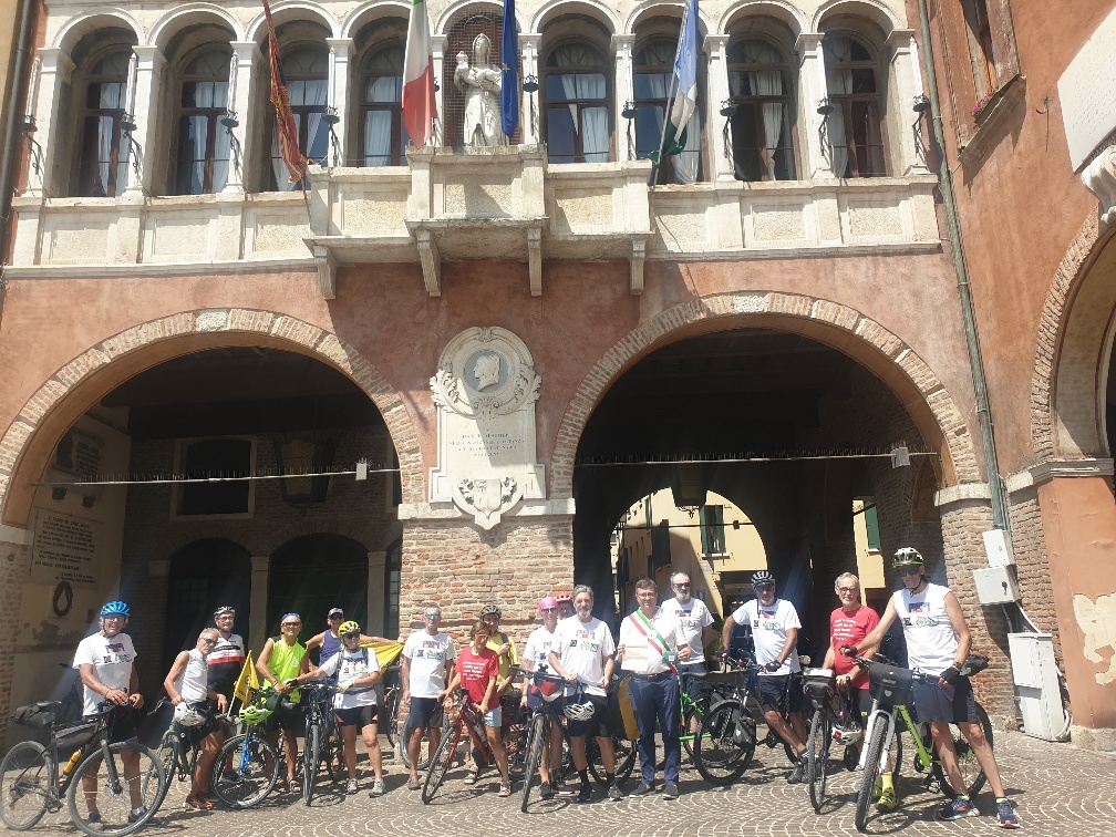ROVIGO – La Staffetta Ciclistica Padova-Bologna per non dimenticare la Strage alla stazione di Bologna del 2 agosto 1980, ha fatto tappa a Rovigo. Ad accogliere la delegazione in piazza Vittorio Emanuele II, questa mattina era presente il vicesindaco Andrea Bimbatti, che ha firmato la cartolina “Io non dimentico” destinata al presidente dei Familiari Paolo Bolognesi e ne ha ricevuta un’altra riportante un QR CODE che rimanda al sito stragi.it da esporre all’interno del municipio.