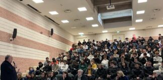 Nicodemo Gentili e Gino Cecchettin con i ragazzi del Viola Marchesini per una giornata di sensibilizzazione contro la violenza di...