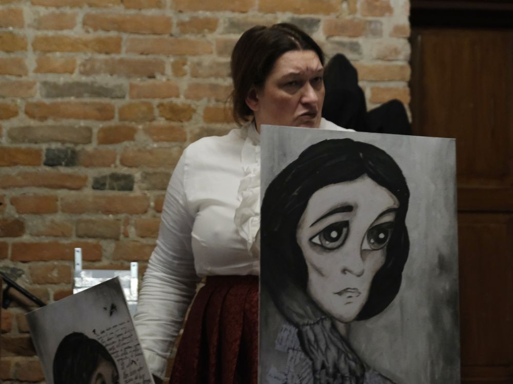 Tutto esaurito nella sala dell’antica stalla ristrutturata per assistere alla proposta della compagnia Teatro Nexus di Rovigo, che ha presentato lo spettacolo “Hai pensato a una storia? Donne che scrivono, mostri riflessi e altre questioni”, intenso monologo di Barbara Chinaglia accompagnato dalla voce e dalle musiche dal vivo di Claudia Turolla.