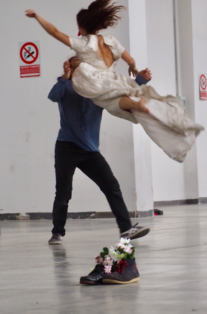 La “Romanza”, in versione site specific della coreografa e direttrice artistica di Twain, Loredana Parrella, è una delicata, simbolica, raffinata pièce di danza che racconta il percorso della vita, dall’innocente infanzia, alla crescita, con un accenno al tema delle spose-bambine. Quattro i danzatori in scena che si alternano in giochi di simbiosi, ripetizioni minimaliste e slanci emozionali. Molto pubblico e molto affascinato.