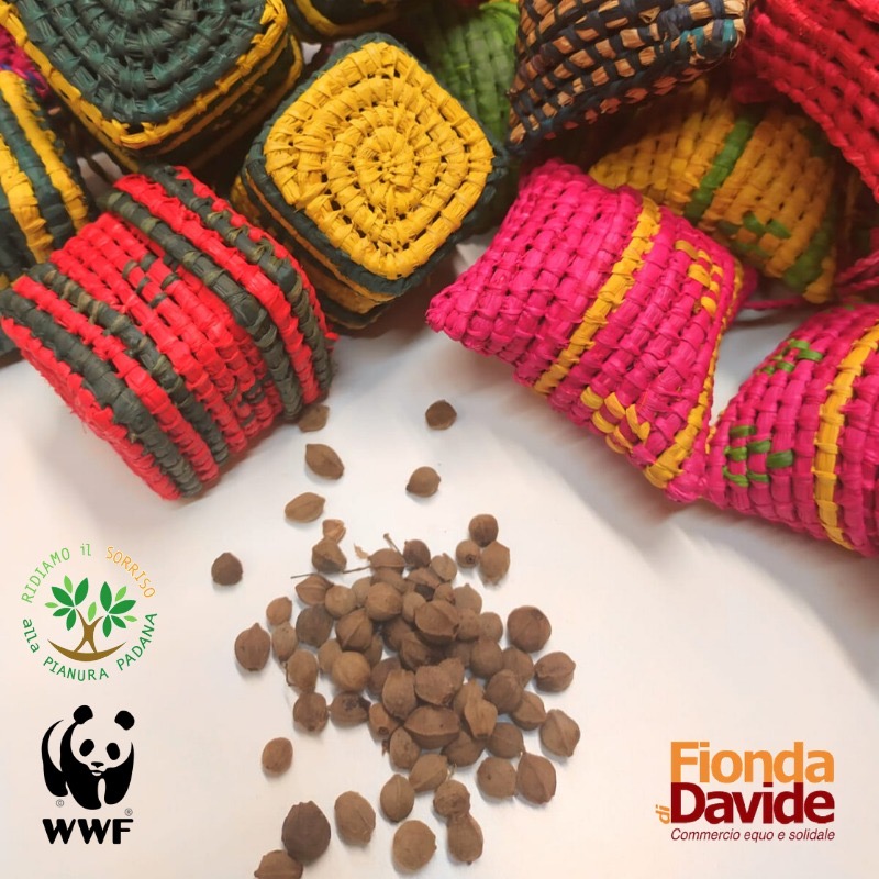 Ogni seme raccolto è essiccato e selezionato, e successivamente confezionato, nel laboratorio per disabilità psichiatrica della cooperativa Porto Alegre di Rovigo, all’interno di scatoline di fibra naturale provenienti da un progetto di commercio equo del Madagascar, per diventare un piccolo dono proiettato nel futuro: diventerà un albero. Non solo: parte del ricavato di questo progetto torna al WWF di Rovigo per sostenerne le attività.