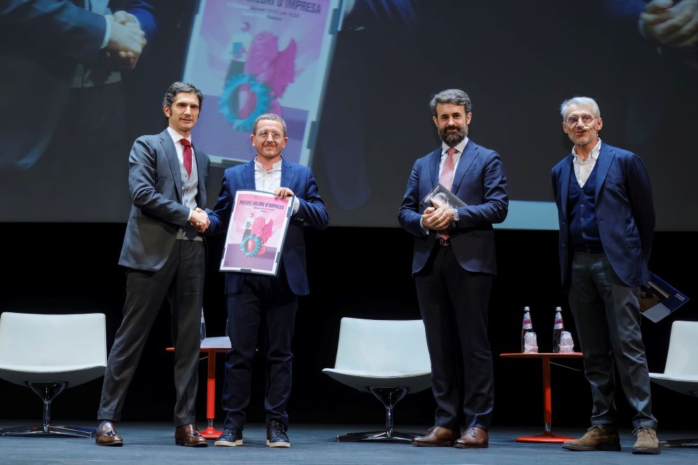 A moderare l’evento conclusivo del premio organizzato da Confindustria Veneto Est con la collaborazione e il patrocinio di CentroMarca Banca Credito Cooperativo di Treviso e Venezia e con il contributo di Umana, è stato Auro Palomba, CEO e fondatore di Community, nonché Segretario del Premio. Sul palco, si sono alternati alcuni componenti della giuria, presieduta da Leopoldo Destro, Presidente di Confindustria Veneto Est e composta da: Denise Archiutti, Delegata alla Cultura d’Impresa di Confindustria Veneto Est, Mario Calabresi, Giornalista e scrittore, ora Direttore del progetto editoriale “Altre Storie” e co-fondatore della podcast company Chora, Tiziano Cenedese, Presidente CentroMarca Banca, Monica D’Ascenzo, Giornalista del Sole 24 Ore e Direttrice di Alley Oop, Alessandro Garofalo, Esperto di Innovazione, Giovanni Viafora, Giornalista, Caporedattore del Corriere della Sera.