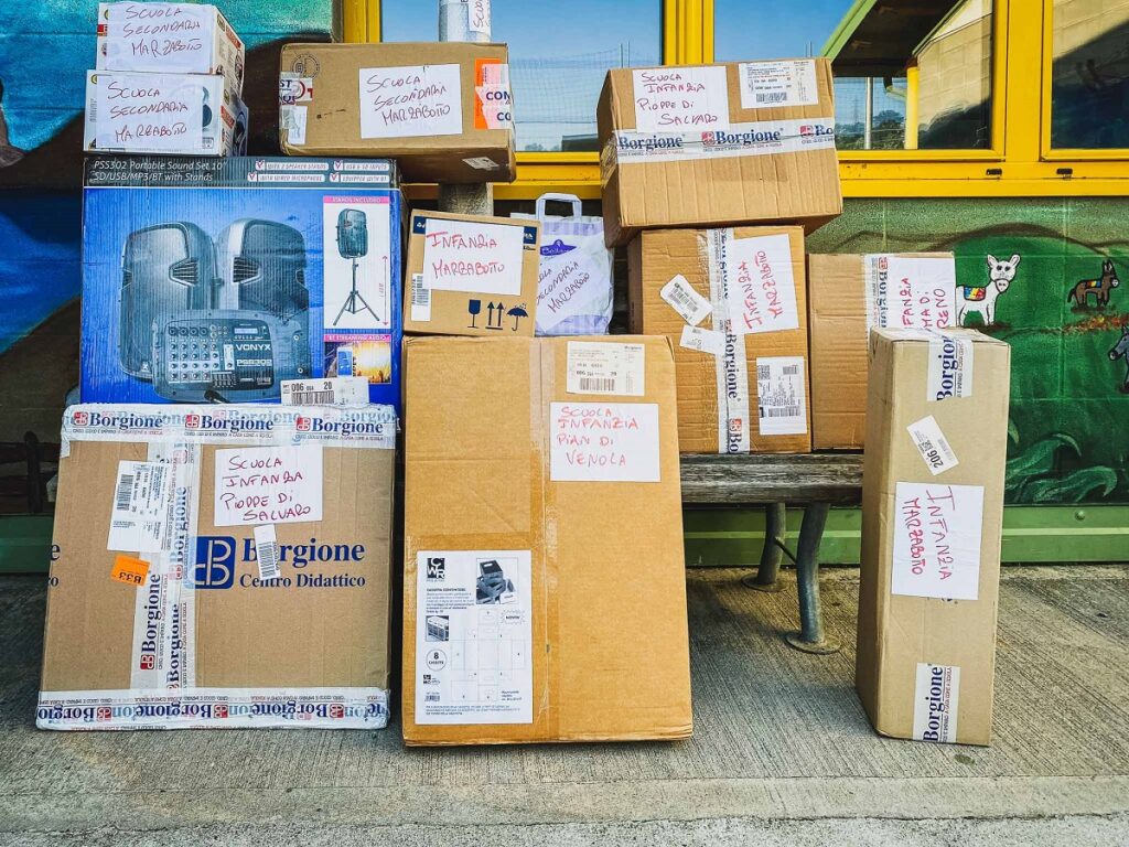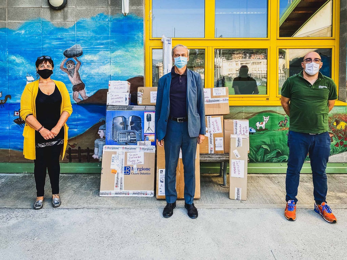 Mixer con casse audio, radio stereo, sono solo una parte delle donazioni destinate alle scuole di Marzabotto giunte a destinazione. A consegnare scatole e scatoloni, riposti all’ingresso delle scuole in ottemperanza alle regole ministeriali anti Covid 19, una delegazione con Andrea Pezzuolo presidente di Faedesfa No Profit, l’assessore Simona Benassi e il consigliere Roberto Lovati per il Comune di Marzabotto.