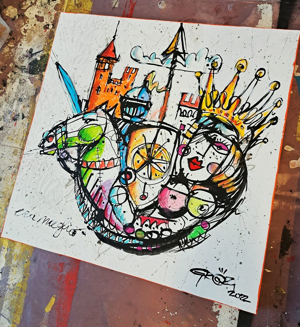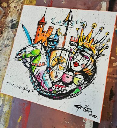 «“Torri, Regine e Cavalieri” non sono solo un’immagine narrativa ma una vera metafora – spiega Mazzotti – ove le torri rappresentano il cammino dell’artista sempre in salita per conquistare le vette, le Regine rappresentano le carte indispensabili per riuscire a vincere la partita: impegno e dedizione, i Cavalieri sono proprio gli artisti, paladini del pensiero visivo e della società».