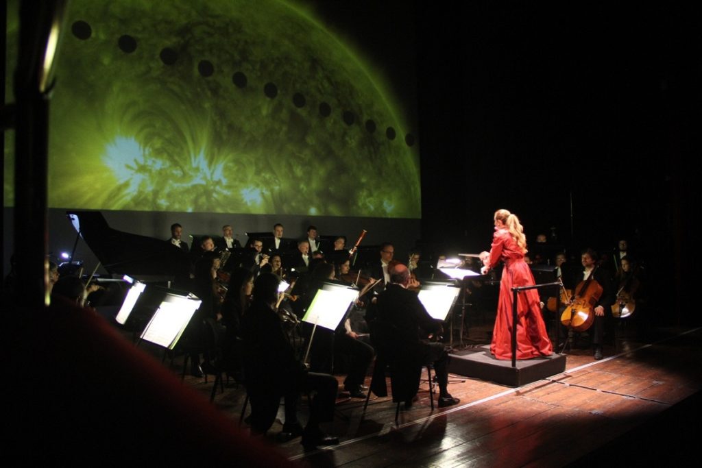 Teatro pieno per un concerto che ha messo in luce tutta la maestria di una delle principali orchestre italiane e affascinato i presenti, grazie anche alle proiezioni del sistema solare, fornite dall’Osservatorio astronomico Inaf di Padova e a cura di Big Rock.