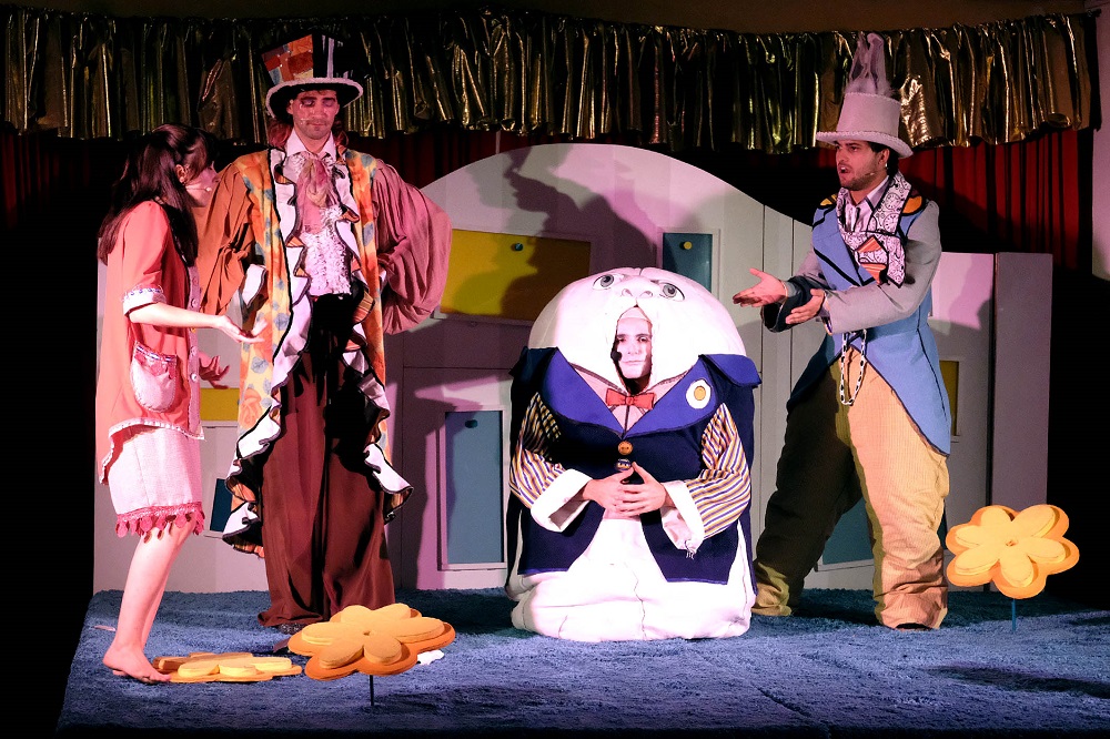 Generi e tecniche teatrali si assommano e s’intrecciano in una struttura narrativa compatta e veloce, senza vuoti. L’atmosfera magica delle ombre cinesi che proiettano la lettura di un libro pop-up da parte di Alice, i pupazzi animati, la clownerie svampita del Cappellaio Matto, un magistrale Guido Scarroni che ricopre il ruolo più ampio e complesso in modo avvolgente; il classico delle “torte-in-faccia”, il deus ex machina dietro i cambi di scena (sempre Davide Lazzaretto: lui il Gatto e la Regina, i fiori Margherita e Narciso, ed anche l’uovo Humpty Dumpty, oltre che prestare le mani dietro i cassetti del fondale-testata) ed i simpatici duetti da avanspettacolo comico con l’ansiogeno Bianconiglio perennemente in ritardo (Marco Mattiazzo, miglior attore ad EuroPuppet 2022) si fondono con una recitazione solida, vivace e convincente.
