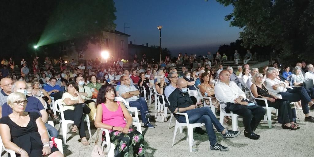 LUSIA (RO) – Una di quelle belle serate in musica fra amici, che mancavano tanto. L’Anteprima di Tra Ville e giardini 2021, edizione XXII, di mercoledì 7 luglio, è stata un vero successo di pubblico, uscito visibilmente contento e rilassato al termine del programma. Esauriti tutti i posti disponibili. Complice il suggestivo Parco delle Rimembranze di Lusia, col suo carico di storia delle tragedie belliche e mozziconi del passato, si è creata un’atmosfera colloquiale e rasserenante. Le proiezioni in memoria dei maestri Ennio Morricone e Franco Battiato, cui era dedicata la serata (con foto, musiche e la testimonianza di Luca Simoncini, violoncellista del “Nuovo quartetto italiano” di archi, che ha accompagnato Franco Battiato per anni in tutti i tour), si sono alternate alla presentazione del cartellone eventi di Tvg 2021 e al ricordo dei due maestri che il direttore artistico Claudio Ronda ha evocato intervistando una eterea Silvia Nair, che è stata opening act del maestro Battiato, e che ha sfoderato la sua voce magica in Gabriel’s oboe: tema di Mission di Morricone, nella versione con testo intitolata “Nella fantasia”; la cantautrice, pianista di origini rodigine ha poi offerto al pubblico la proiezione del suo ultimo video musicale del brano “Ti rivedrò”: una ballata struggente dedicata alla mamma scomparsa, girato volutamente dentro le architetture del Censer di Rovigo, che si fondono nella melodia.