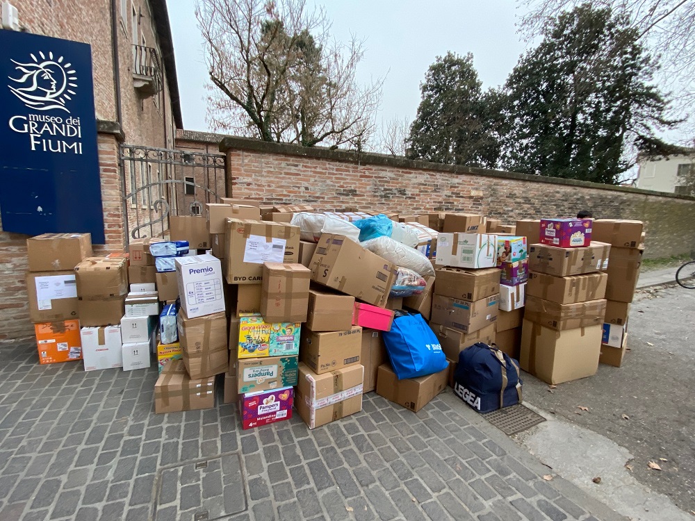 Nella cappella di San Gregorio, divenuta punto di riferimento della comunità ucraina rodigina, sono in tanti a darsi da fare per raccogliere la grande quantità di materiale donato e imballarlo in cartoni che poi verranno caricati su furgoni e camioncini, che settimanalmente partono da Rovigo alla volta del confine tra la Polonia e l’Ucraina.
