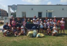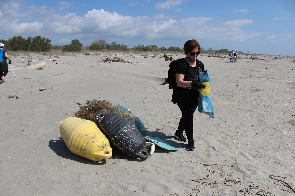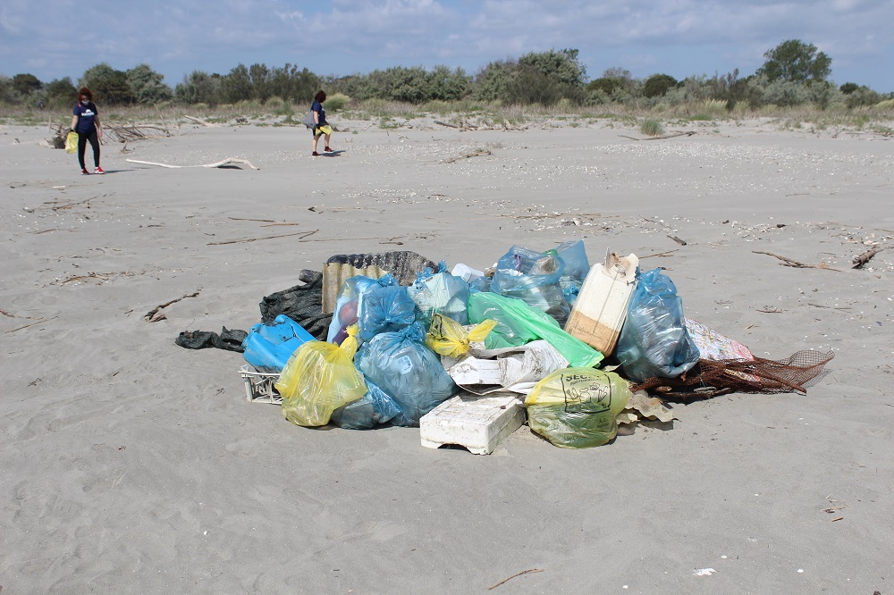 Durante la camminata ecologica sono stati raccolti circa 50 di sacchi colmi di materiale, in prevalenza plastico – come bottiglie d’acqua e di bibite varie – lattine, residui delle lavorazioni dei molluschi e bivalvi, gavitelli di plastica e addirittura una vasca di lavaggio di grosse dimensioni in materiale plastico poco distante dalla battigia.