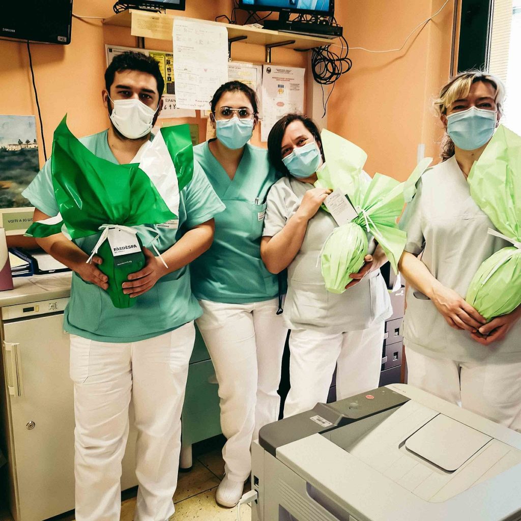 Da fine marzo ad oggi Faedesfa No Profit ha realizzato il progetto “Per gli ospedali” con cui ha destinato diverse migliaia di uova pasquali alle strutture che hanno scelto di aderire. Le uova di Faedesfa sono arrivate a destinazione in Veneto agli ospedali dell’Ulss 5, a Rovigo e Trecenta. A Legnago al “Mater Salutis” dell’Ulss 9. Agli ospedali di Padova e Schiavonia dell’Ulss 6. Nel Veneziano all’ospedale di Dolo, a Treviso all’Ulss 2 al “Ca’ Foncello”, a Vicenza all’ospedale “San Bortolo”. In Emilia Romagna, a Ferrara al “Sant’Anna”. E in Toscana, a Firenze al “San Giovanni di Dio” e ad Empoli al “San Giuseppe”.