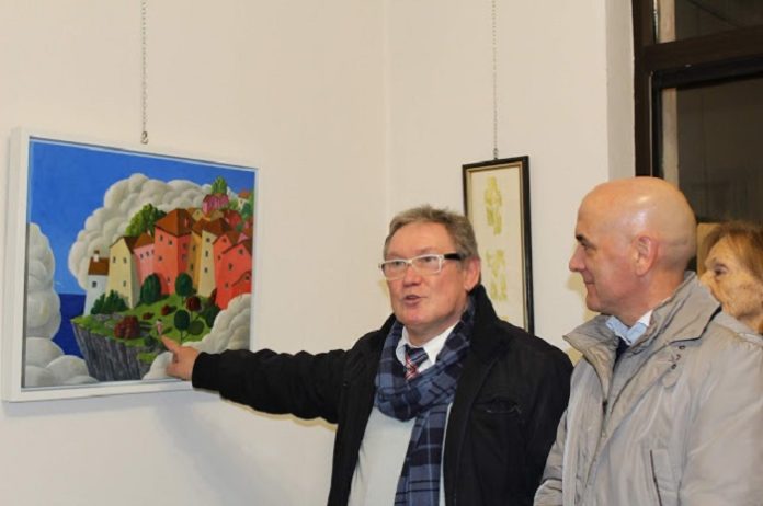 Le opere, una trentina, hanno in comune una tecnica esecutiva che riporta ad un “figurativismo realistico, anche quando la fantasia va oltre l’oggettiva realtà delle cose”, come definisce lo stesso Artista. In alcune rimane legato ad un realismo accademico, con zone cromatiche ampie in modo da rendere plastiche le figure. In altri quadri dà sfogo alla fervida fantasia, creando fiabesche narrazioni, ambientate in paesaggi anderseniani, abbarbicati su dirupi, o su isole di nubi dove solo un solitario sailor su di un gozzo fatiscente, pilotato da un pettirosso può ammirare dall’alto il mare sottostante sconfinato, ma non privo di approdi per imbarco verso nuove avventure.