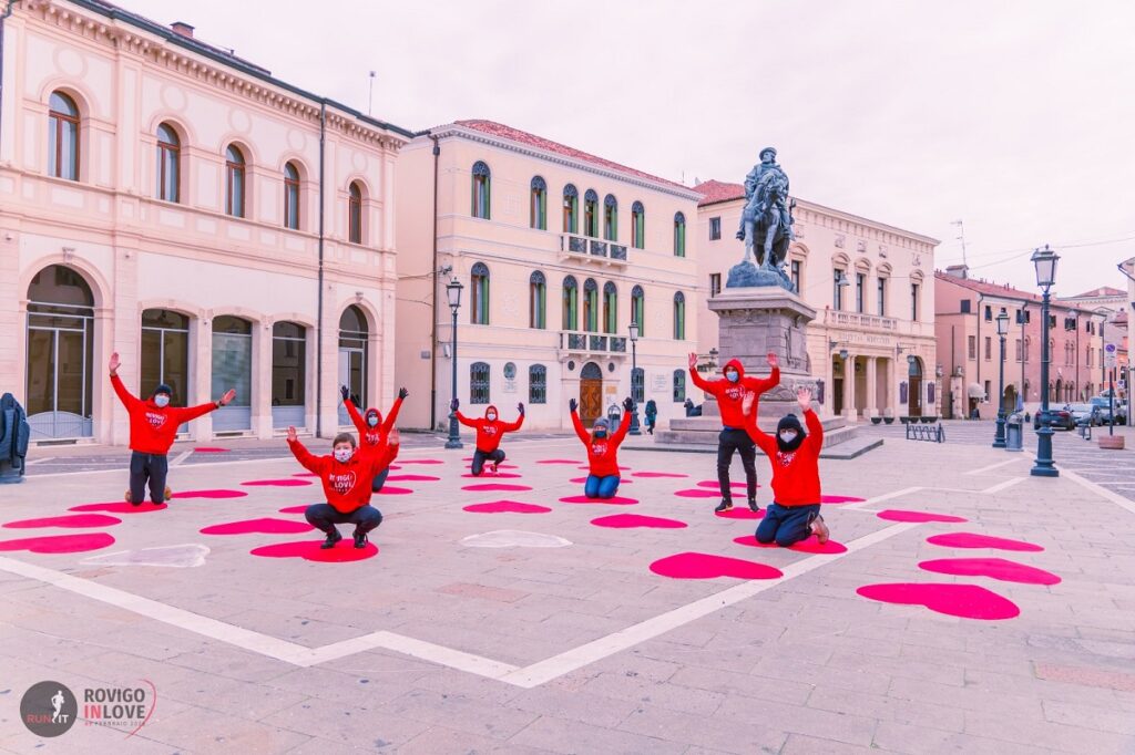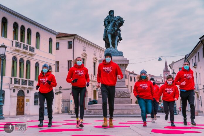È il messaggio dell’iniziativa che l’Asd rodigina, Run It, ha organizzato la vigilia di San Valentino nel capoluogo polesano. I cuori decorativi in piazza Vittorio Emanuele II, sono stati la scenografia romantica perfetta, per gli scatti fotografici con protagonista una delegazione degli atleti di Run It (Foto © Paolo Allodoli – Elaborazioni Aeree).