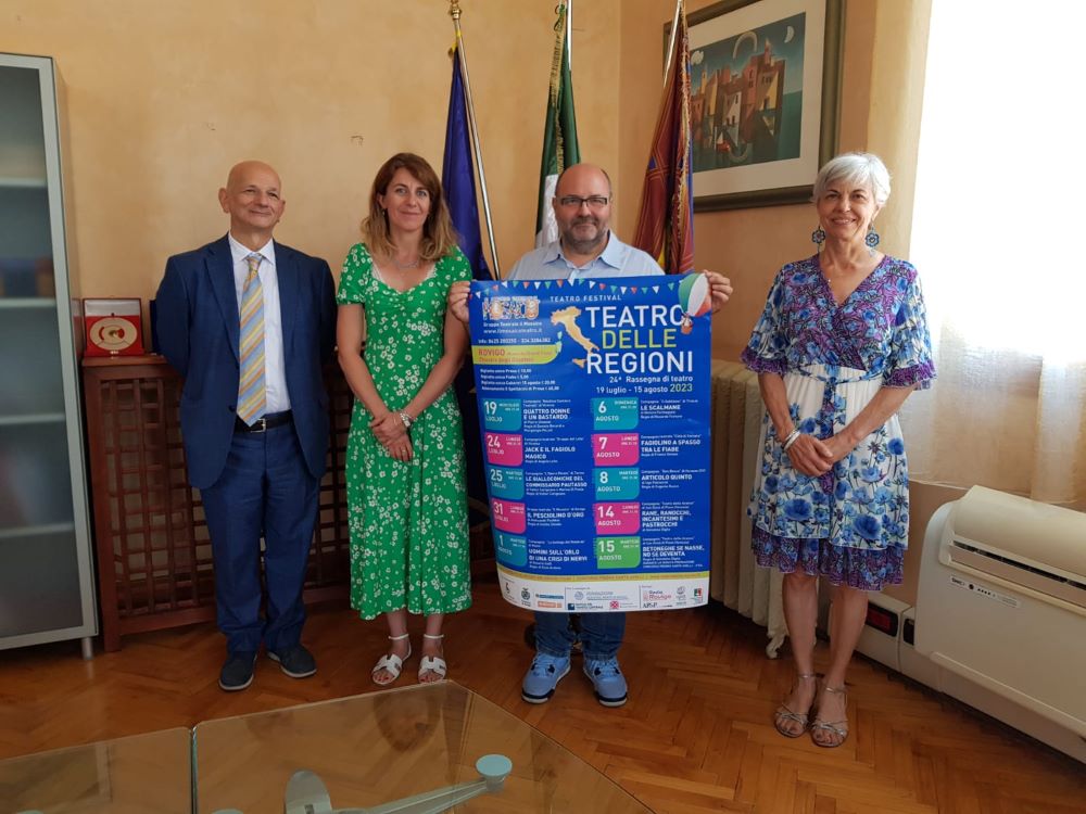 ROVIGO – Torna l’atteso festival “Teatro delle Regioni”. Dieci appuntamenti tra tradizione e innovazione nella prestigiosa cornice del Chiostro degli Olivetani. La manifestazione, organizzata dal gruppo teatrale “Il Mosaico” di Rovigo, con il sostegno della Fondazione Banca del Monte di Rovigo, di Banca del Veneto Centrale e il patrocinio del Comune di Rovigo, della Regione Veneto, della Provincia di Rovigo e della Fondazione Rovigo Cultura, è stata presentata  oggi a palazzo Nodari, presenti: l’assessore alla Cultura Benedetta Bagatin, Emilio Zenato, direttore artistico del Festival, Cinzia Malin per la Fondazione Banca del Monte di Rovigo  e Bruno Candita dell’Ufficio Comunicazione e Relazioni esterne della Banca del Veneto Centrale.